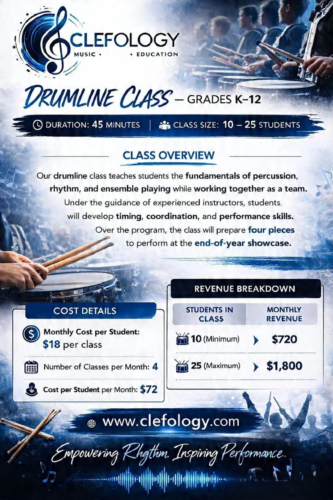 Drumline builds discipline, teamwork, and time management that boost classroom success. Regular rehearsals teach planning, meeting deadlines, and balancing practice with academics. Ensemble precision sharpens focus and concentration, aiding test performance and study habits.